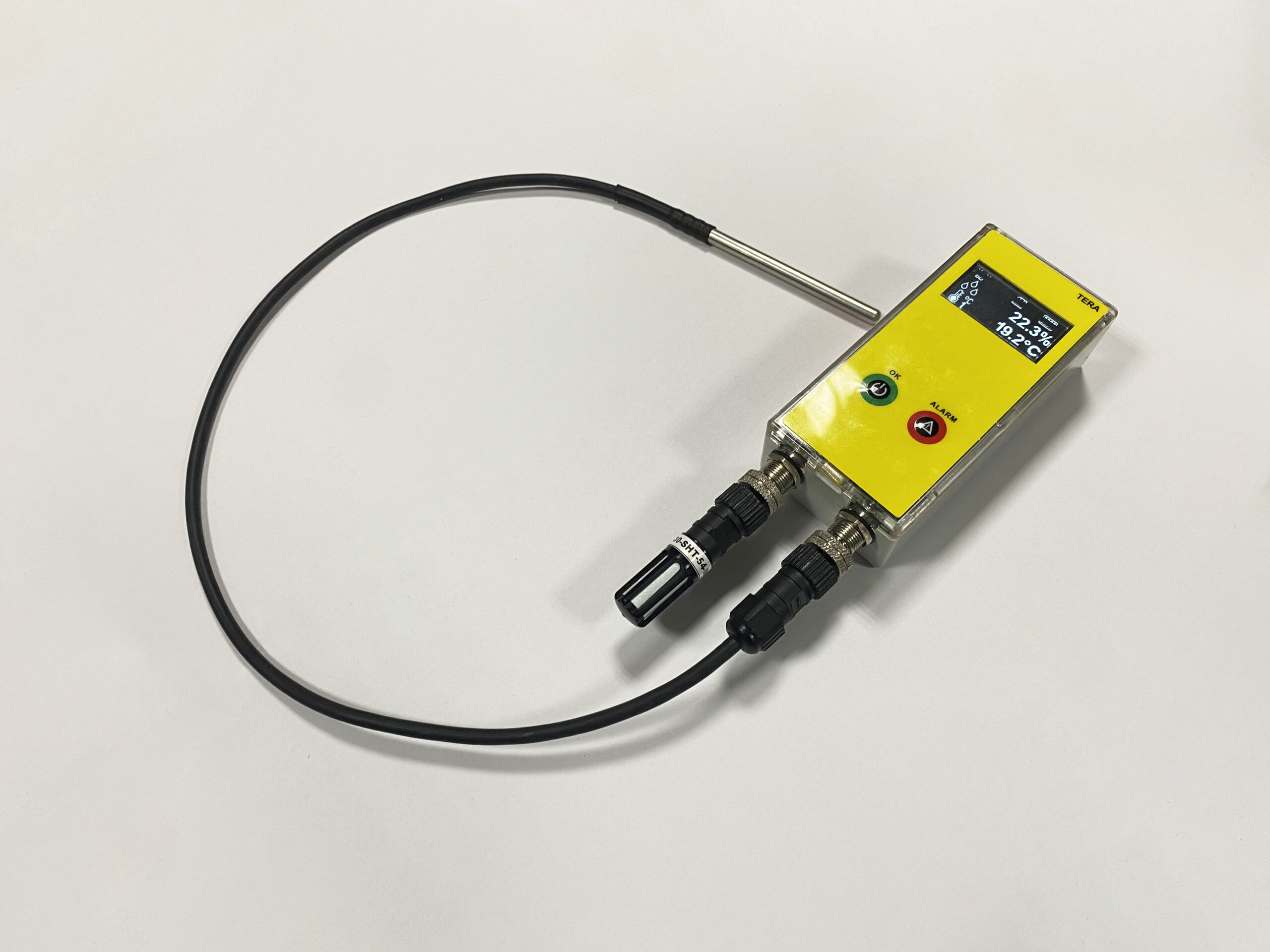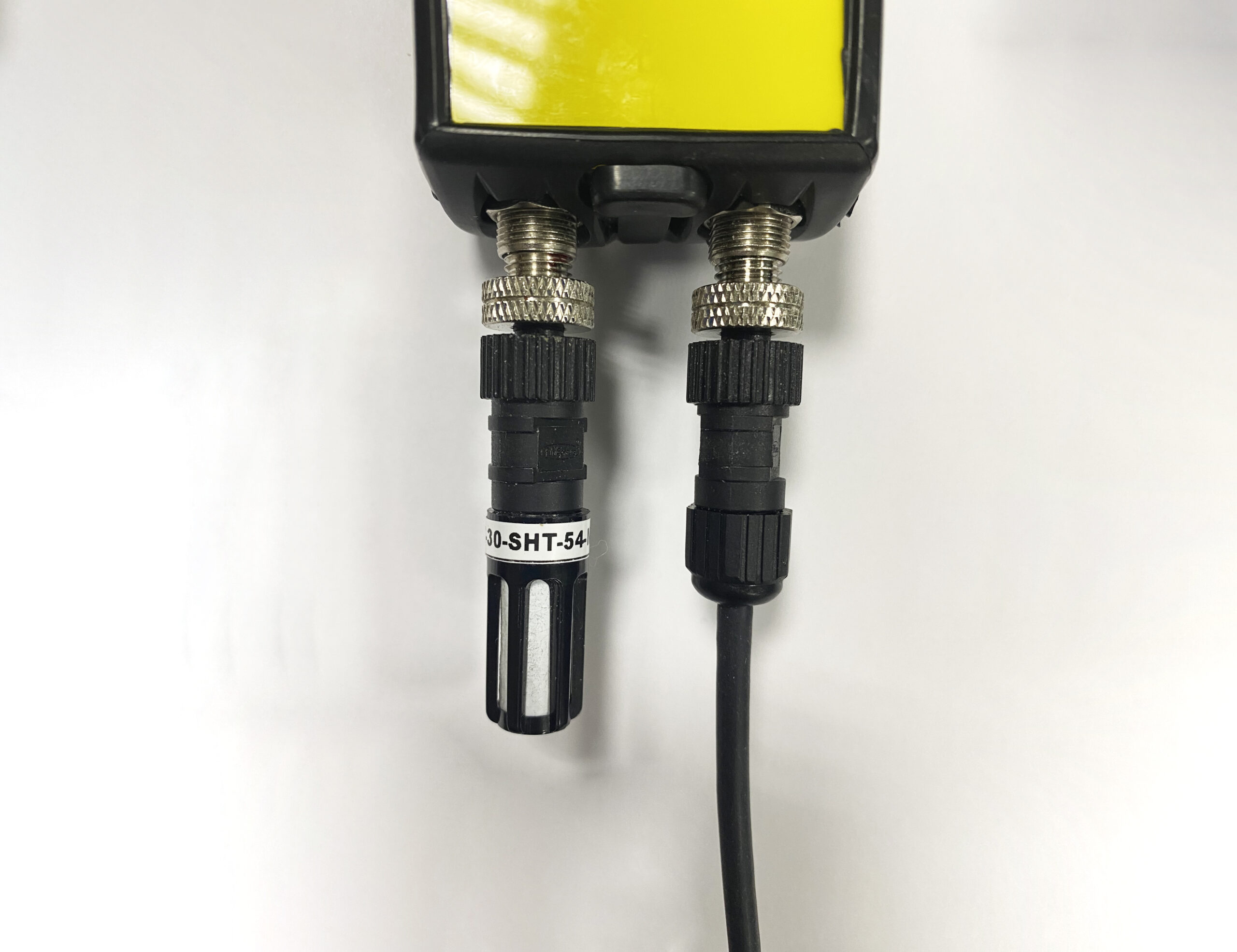 Pentru indicații se utilizează un ecran OLED de contrast înalt, pe care sunt afișate valorile umidității și temperaturii pe toate canalele de măsurare. În plus, pe ecran se afișează nivelul semnalului, încărcarea bateriei și numărul de serie. Jurnalul este livrat cu un suport din cauciuc pentru protecție împotriva șocurilor și căderilor și are un sistem de prindere magnetic integrat. Jurnalul are două conectori IP67 M8 la care pot fi conectați unul sau doi senzori de temperatură externi Pt1000 sau un senzor de umiditate și temperatură a aerului SHT. De asemenea, dispozitivul are un conector USB-C pentru conectarea încărcătorului bateriei. Bateria litiu-ion de tip 18650 a jurnalului de date poate fi înlocuită rapid, dacă este necesar, de către utilizator.